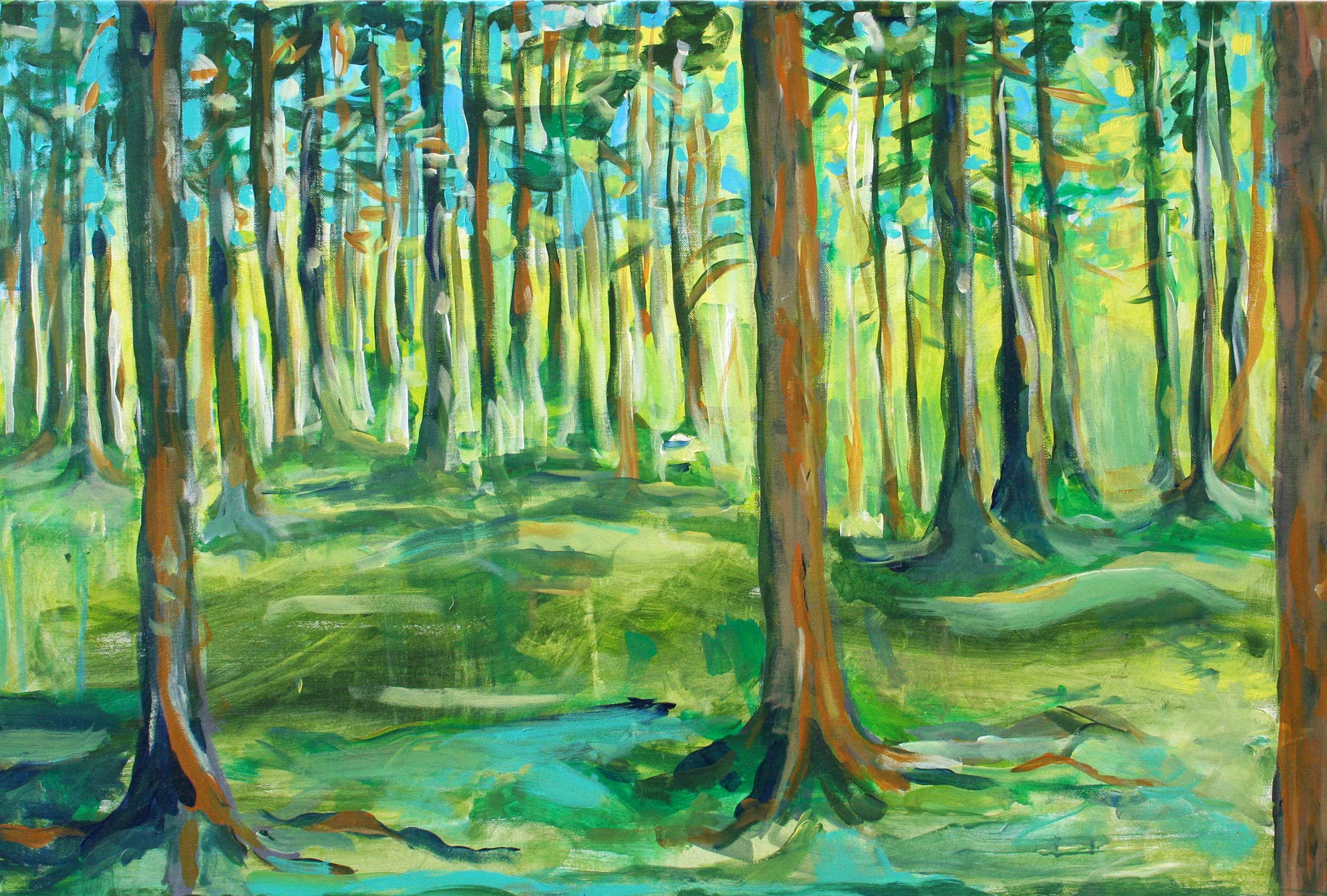 Wälder und expressionistische Waldlandschaften. Alle Werke Acryl auf Leinwand. Unterschiedliche Formate